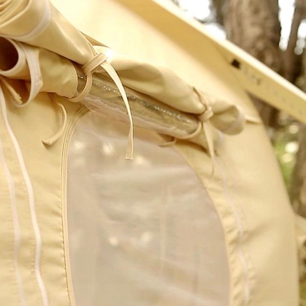 - 4 zipped mesh & PVC window layers with zipped canvas roll down blinds